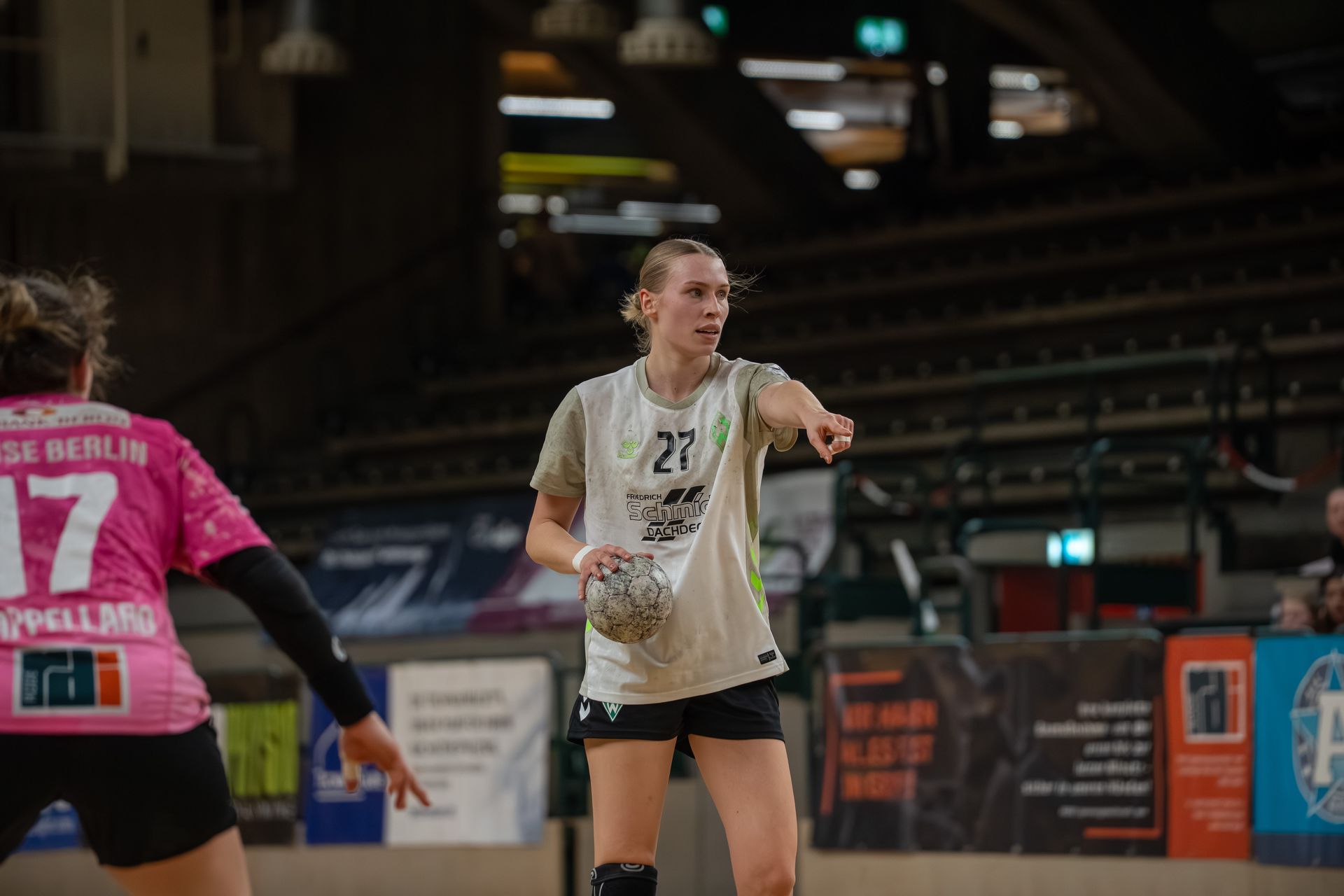 Das Duell beim Tabellenvierten und Aufstiegsaspiranten in der Bundeshauptstadt offenbarte Parallelen zu vorangegangenen Begegnungen in dieser Saison. Obwohl der SV Werder ersatzgeschwächt antrat und unter anderem aufgrund des verletzungsbedingten Fehlens von Alina Defayay, Meike Becker und Benita Zemke keine gelernte Kreisläuferin aufbieten konnte, entwickelte sich in der ersten Halbzeit lange ein Spiel auf Augenhöhe.