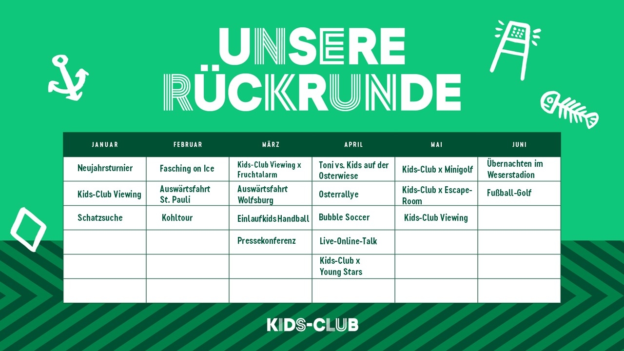Unser grün-weißer Kids-Club ist ein exklusiver Club für junge aktive und fördernde Mitglieder bis zum 14. Geburtstag. Neben Auswärtsfahrten, Heimspielerlebnissen und Gemeinschaftsaktionen mit anderen Bundesliga Kids-Clubs, gibt es ganzjährig viele spannende Events und coole grün-weiße Aktivitäten, an denen unsere Mitglieder teilnehmen können. Der Kids-Club bietet für alle Interessen ein abwechslungsreiches Angebot und heißt alle herzlich willkommen!