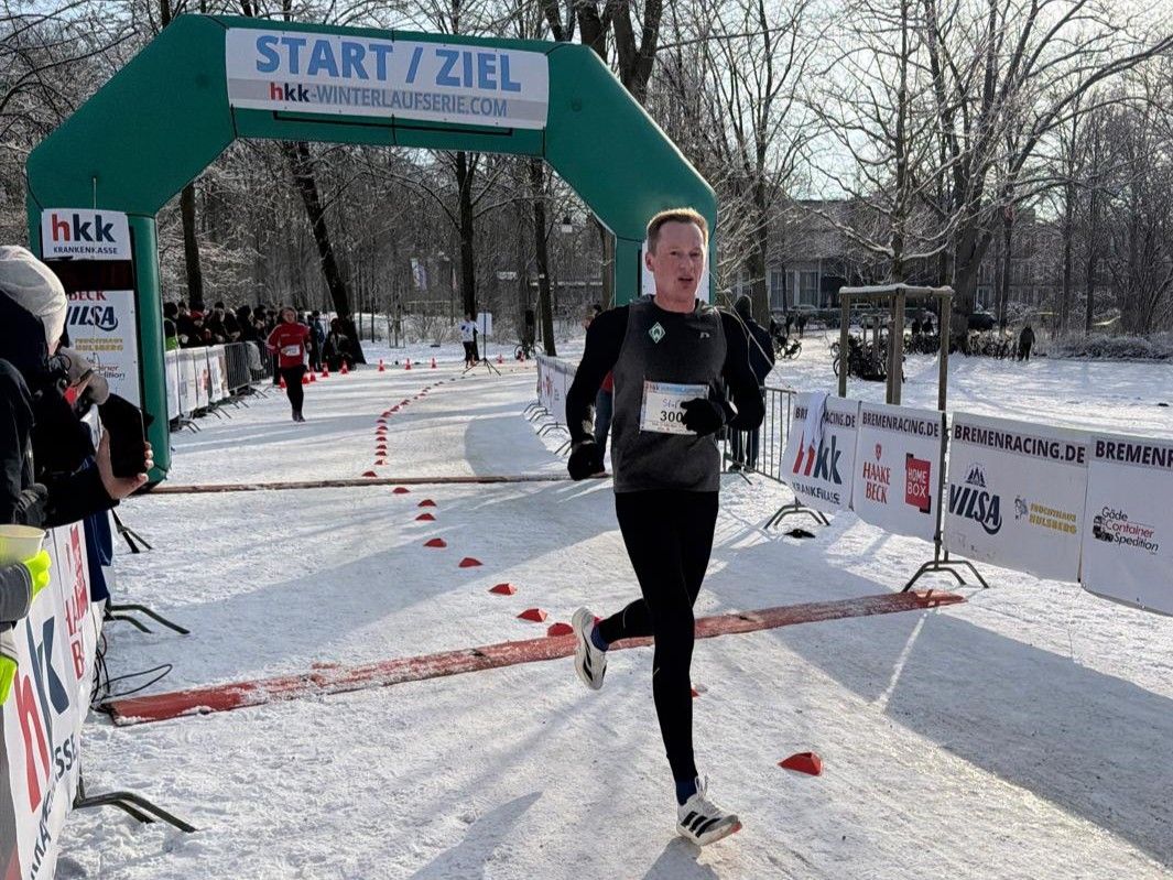 Parallel zu den Hallenwettbewerben wurde im Bremer Bürgerpark der zweite Lauf der Winterlaufserie 2026 ausgetragen. Der Lauf, der bereits zwei Mal aufgrund der Wetterverhältnisse verschoben werden musste, stand auch dieses Mal aufgrund starker Schneefälle auf der Kippe. Letzten Endes entschieden sich die Veranstalter aber für die Austragung. Die Läuferinnen und Läufer, die letzten Endes antraten (aufgrund der Terminverlegung, des Wetters und Krankheitsfällen nur knapp 50% der gemeldeten Teilnehmer) passten ihren Laufstil und das Tempo den Streckenverhältnissen an und hatten allesamt Spaß, auch wenn es nach Worten von Anna Pape, die in 49:01 min Vierte über 10 km der Frauen wurde, „schon eine Herausforderung war aufgrund von vereisten Streckenpassagen.“ Neben Anna überzeugten ganz besonders Steffen Behrens, der mit 54:44 min über 15 Kilometer nicht zu schlagen war und die Serie souverän anführt. Ebenfalls schnell unterwegs war Lukas Meie, der nach 1:00:58 im Ziel war.