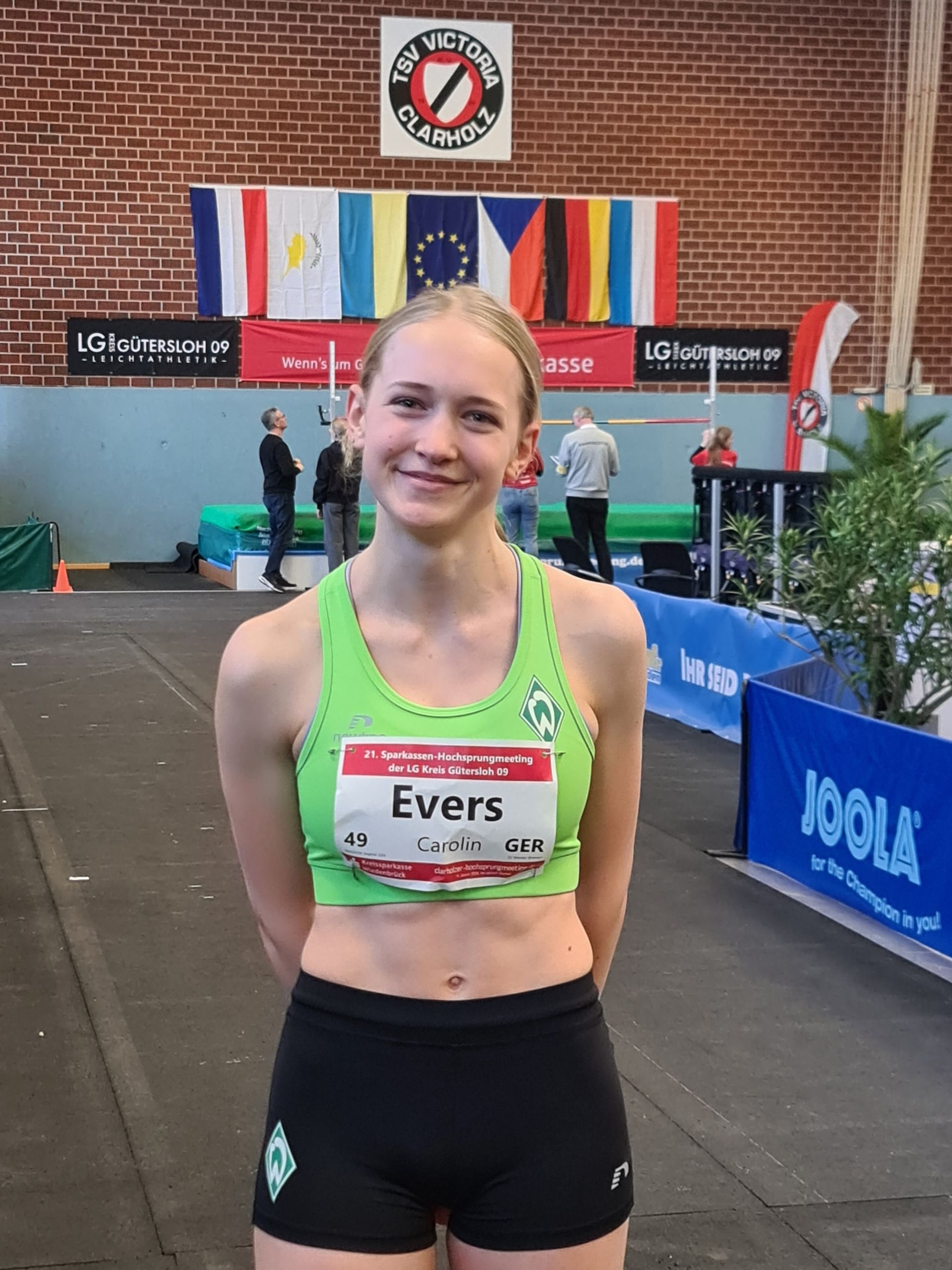 An einer anderen Stelle, genauer gesagt beim Clarholzer Sparkassen-Hochsprungmeeting, trat mit Carolin Evers ein Werder Neuzugang zum ersten Mal im grün-weißen Trikot an. Ihr Wettkampfeinstieg gelang ihr nach den Aussagen ihres Trainers Roman Fricke „mit übersprungenen 1,68 Meter sowie Rang 3 in der U20 ganz gut. Unterm Hallendach ist sie erst einmal höher gesprungen, insofern ein gelungener Auftakt ins Jahr 2026.“