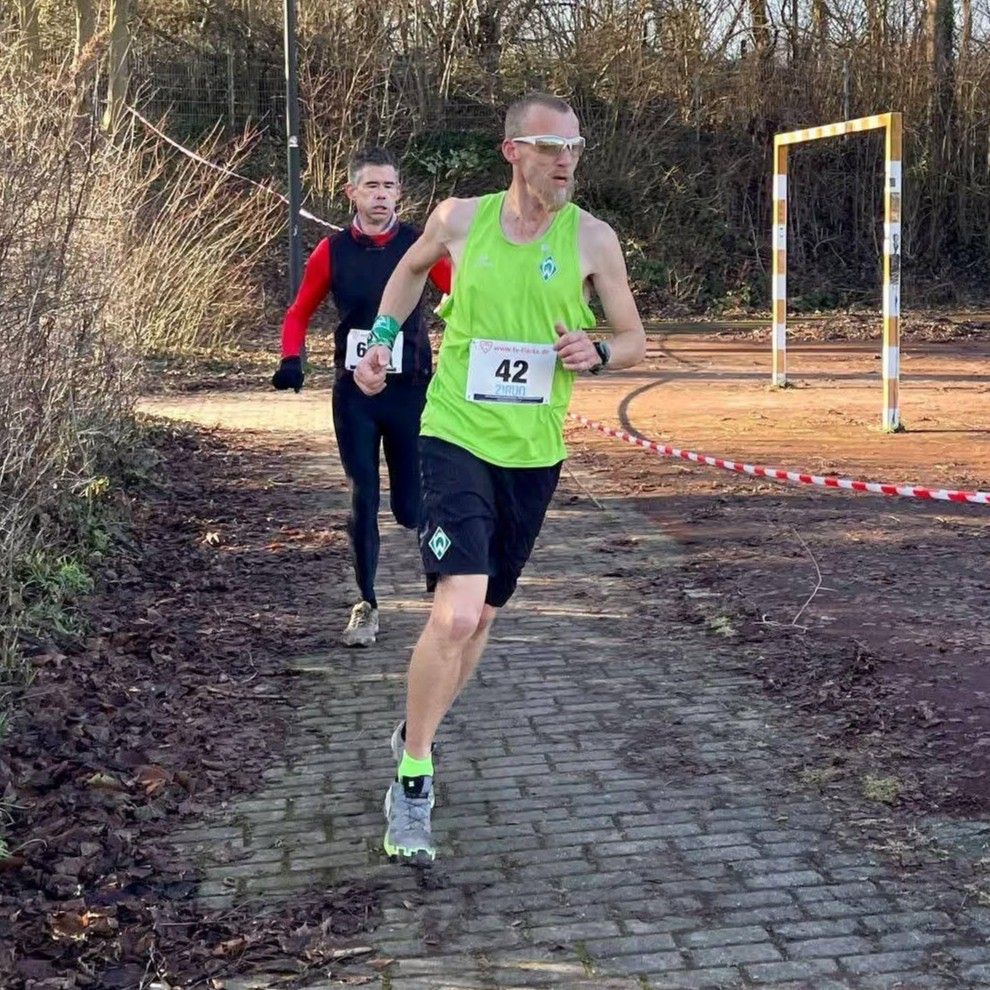 Parallel zur Winterlaufserie ging Uwe Waldhaus beim Welver Crosslauf doppelt, und zwar sowohl über 3.000 m als auch über 8.000 m, an den Start. Der Crosslauf wurde seinem Namen „Cross“ mit kleinen giftigen Anstiegen im Gelände und Graspassagen absolut gerecht und verlangte den Athleten so einiges ab. Uwe startete zunächst auf der kürzeren Strecke, bei der eine Runde über den Wall am Sportplatz, durchs Gelände und wieder zurück zum Sportplatz absolviert werden musste. Der Werderaner gehörte von Beginn an zur Spitzengruppe und belegte im Endspurt Rang 4 der Gesamtwertung sowie den ersten Platz seiner Altersklasse.