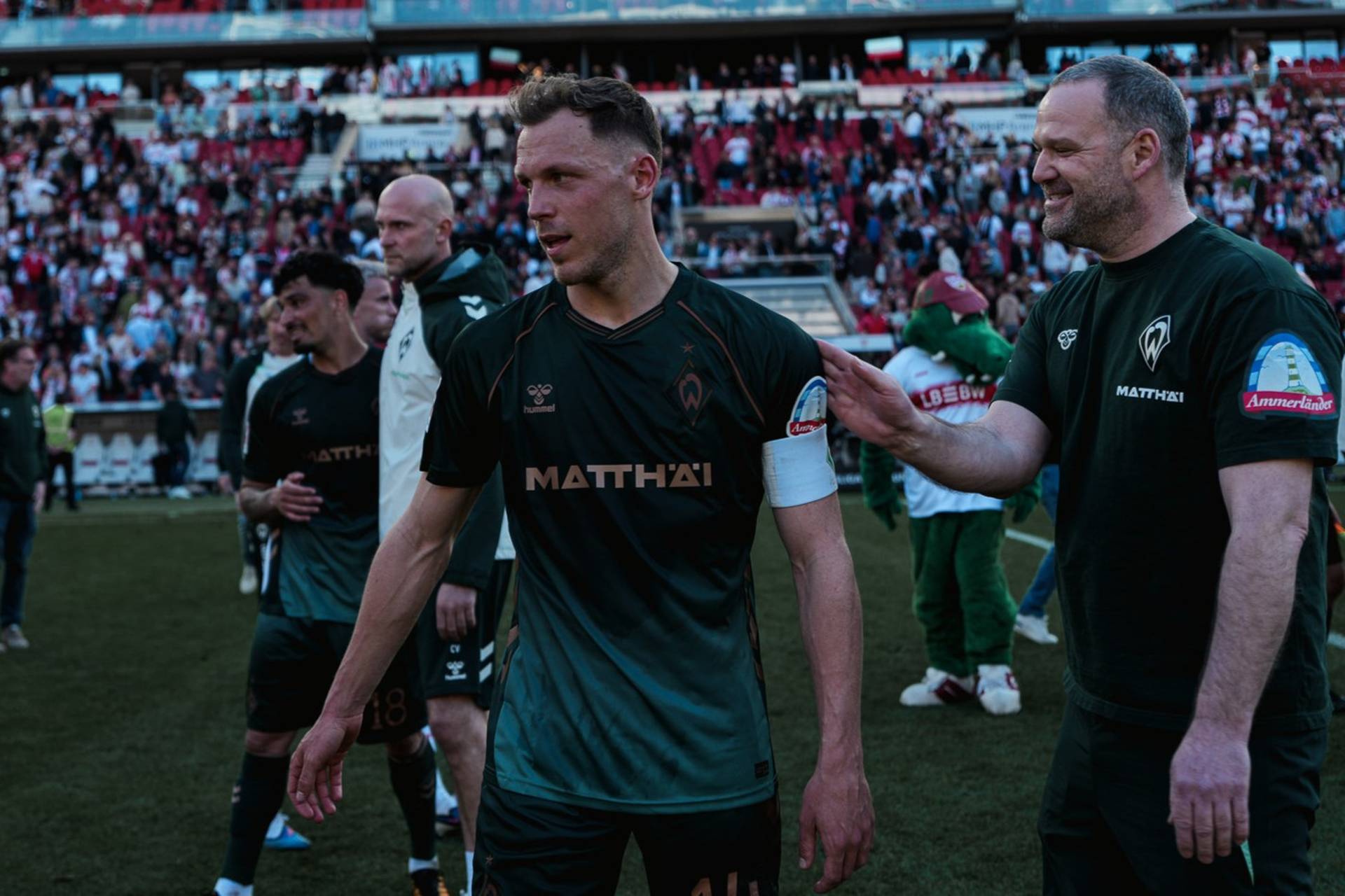Der Wert des gebürtigen Antwerpeners wird allerdings ohnehin nicht an Toren gemessen. Der Rechtsfuß zählte in Stuttgart einmal mehr zu den laufstärksten Spielern auf dem Platz und hielt das Zentrum gemeinsam mit seinen Teamkollegen zusammen - am Ende übernahm er sogar die Kapitänsbinde von Jens Stage nach dessen Auswechslung. „Ich sehe die Helden, über die wenig geredet wird, die aber unglaubliche Faktoren sind“, lobt Cheftrainer Daniel Thioune in einer Medienrunde. „Wenn ich sehe, was Cameron Puertas und Senne Lynen im Defensivverhalten gezeigt haben, dann reduziere ich sie gerne auch darauf.“