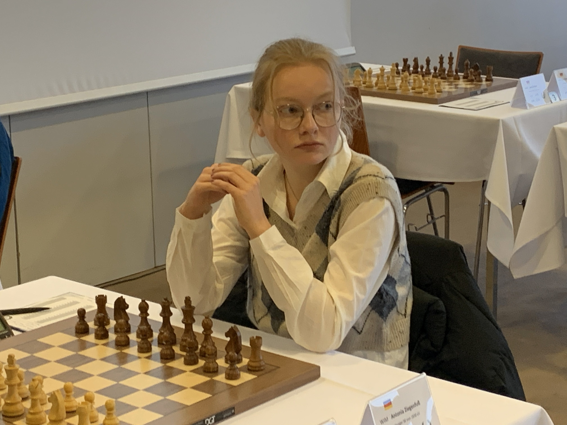 Markus Lammers zeigte sich von seiner Niederlage am Vormittag gut erholt und gewann eine schwierige Partie gegen Rolf Hundack. Nikita Nechitaylo profitierte gegen den unglücklichen Helmut Berresheim von einem Bauernverlust im 4. Zug (1.d4 f5 2.Sf3 g6 3.h4 h6?? 4.Se5 +-), auch Sebastian Müer hat jetzt bereits 3 Punkte nach einem klaren Sieg gegen Jonas Tibke. Genauso wie Edward Bundan (SV Osnabrück), der den starken Fred Hedke aus Delmenhorst bezwingen konnte. Die Verfolgergruppe wird durch eine zweite starke Frau komplettiert: Nach ihrer überraschenden Startniederlage ist jetzt auch die 20jährige WIM Antonia Ziegenfuß nach drei Siegen wieder auf Kurs!
