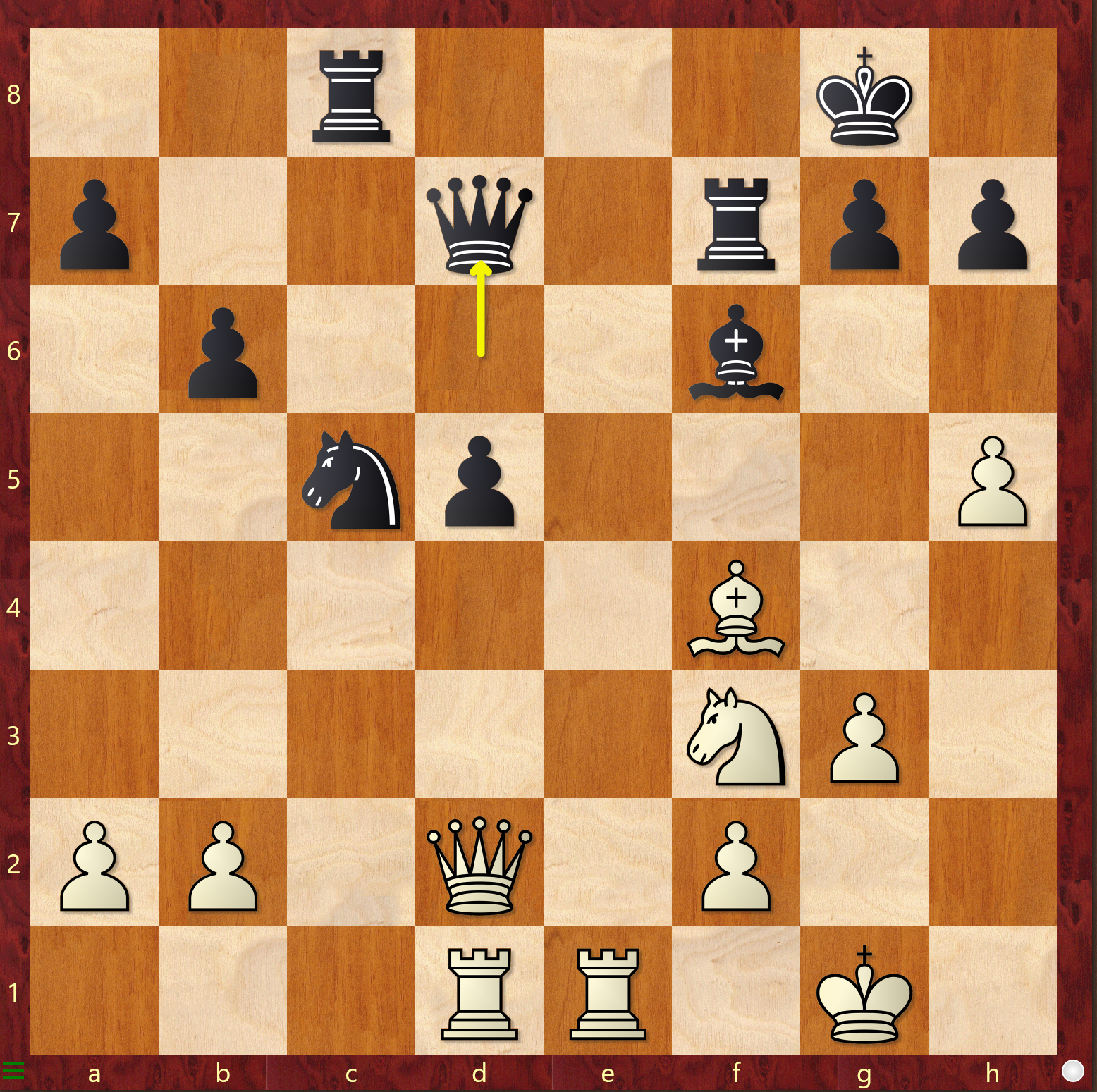 21. Te4! Df8 22.Th4 nebst 23.Th6 und 24.Dh4 zwang den Gegner zur Aufgabe.