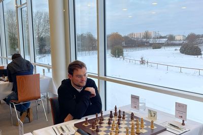 GM Oleg Korneev konnte mit Weiß gegen IM Sim Maerevoet in einer aktuellen Kalaschnikow-Variante keinen Vorteil erzielen. Die Partie endete im Endspiel mit ungleichfarbigen Läufern remis.