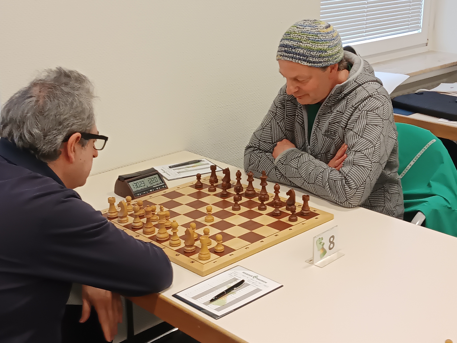 Ebenfalls remis endete die Partie von IM Gerlef Meins, der seine leicht schlechtere Stellung mit Schwarz gut verteidigen konnte.