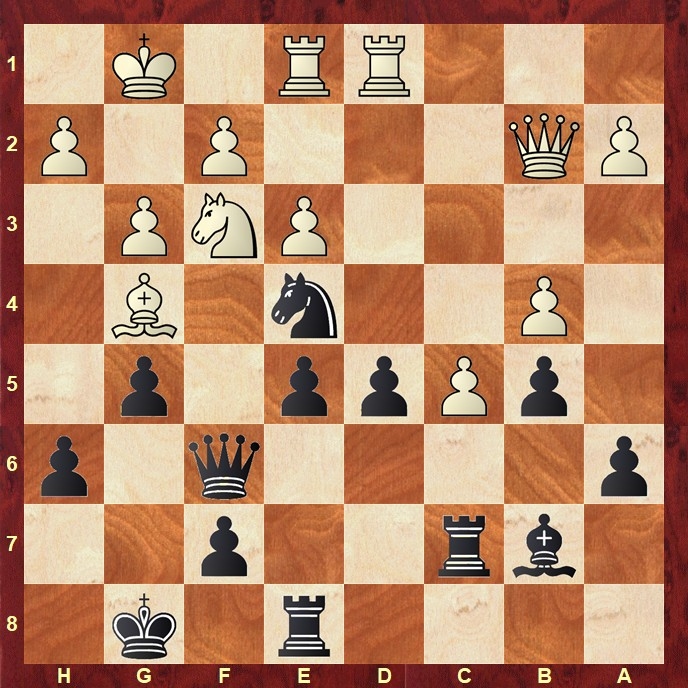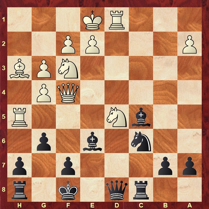 Die Partie zeigt erneut, wie tief inzwischen selbst Nebenvarianten theoretisch vorbereitet sind. In der Diagrammstellung empfiehlt die Engine das präzise 18…h6!. Nach 19.Txh6 Txh6 20.Dxh6 Kg8 ist die schwarze Stellung vollkommen in Ordnung.