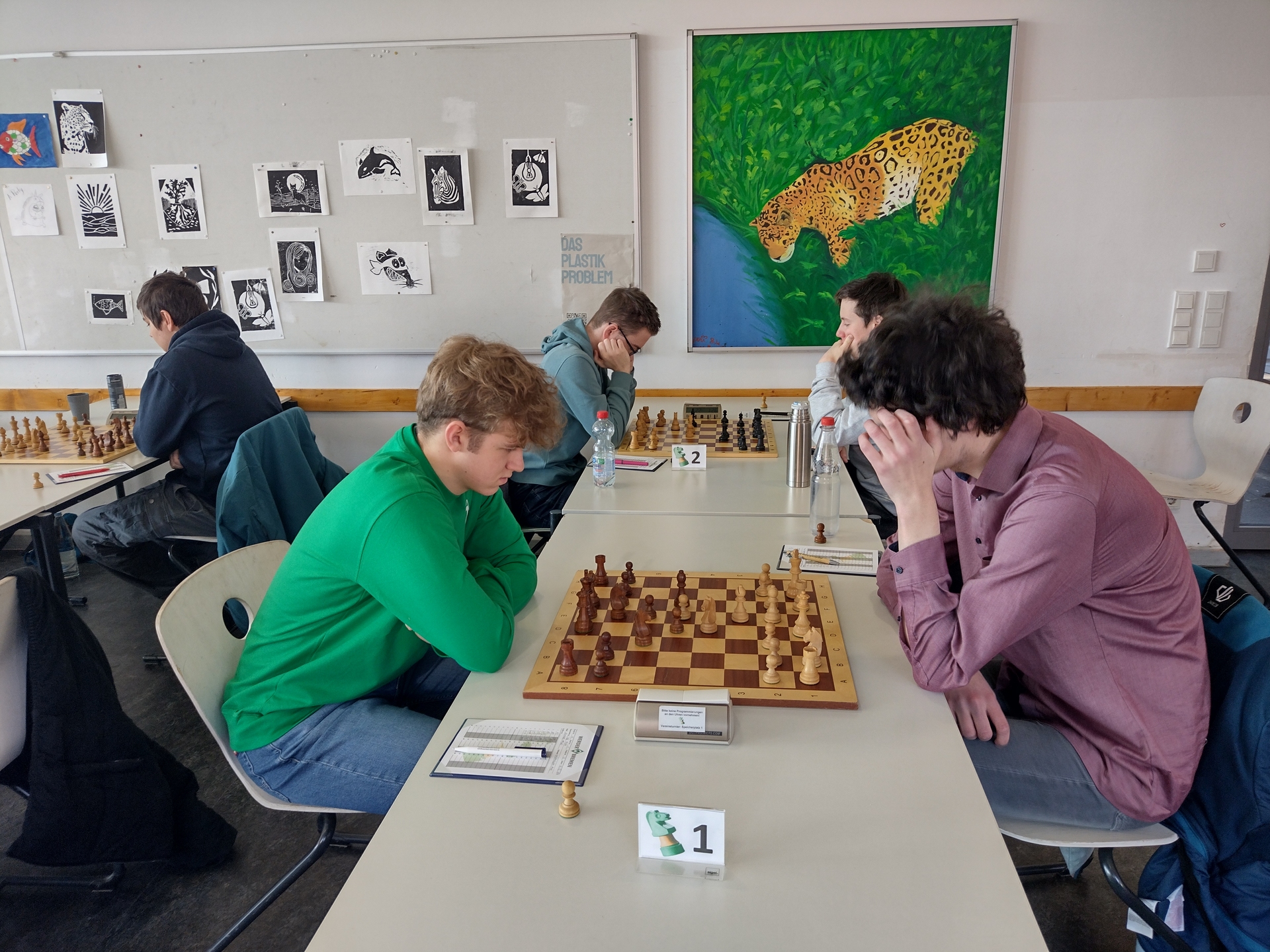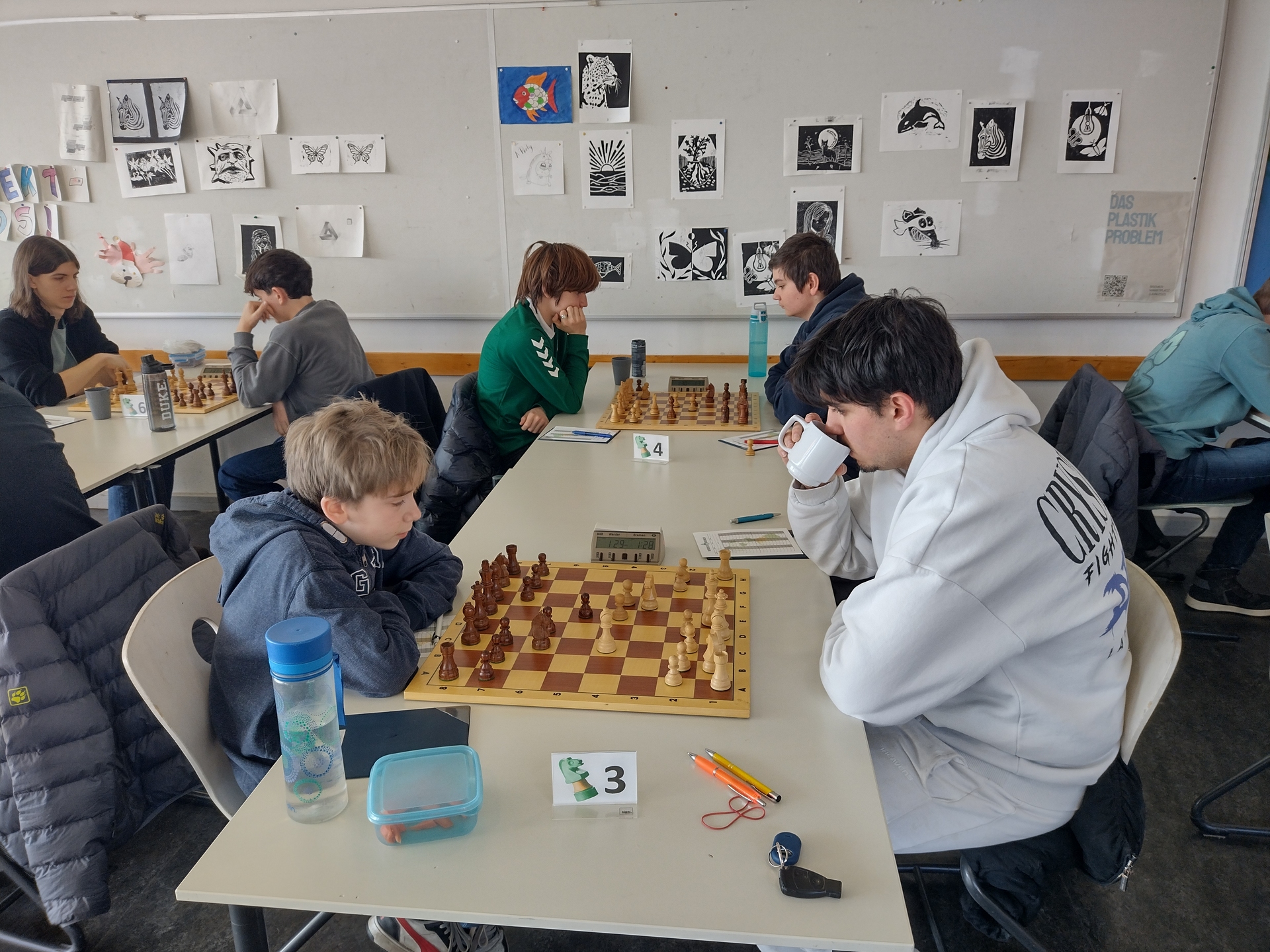 Wie erwartet reisten unsere Gegner nahezu in Bestbesetzung an und machten von Beginn an deutlich, dass sie uns nichts schenken würden. Zwar waren wir an allen Brettern nach Rating favorisiert, doch auf dem Brett zeigte sich schnell, dass uns ein hart umkämpfter Wettkampf bevorstand. Von einem entspannten Nachmittag konnte keine Rede sein – lange Zeit war völlig offen, in welche Richtung sich der Mannschaftskampf entwickeln würde.