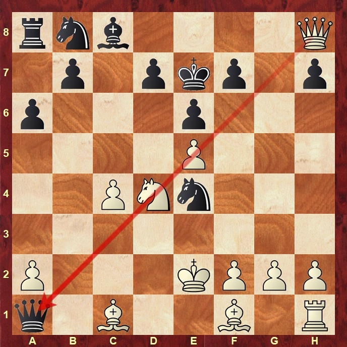 Denn nach 14…d6 15.exd6 fällt die schwarze Dame auf der langen Diagonale. Ein taktisch beeindruckendes Motiv und ein wirklich schönes Bild zum Abschluss der Partie!
