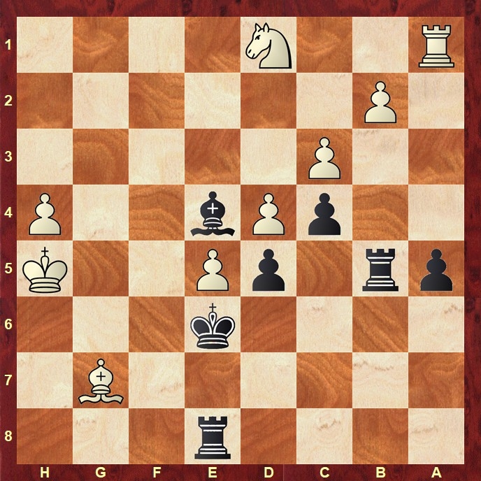 In der Diagrammstellung gewinnt Schwarz mit 44…Tg8! 45.Kh6 Tb7! den weißen Läufer – und damit auch die Partie.
