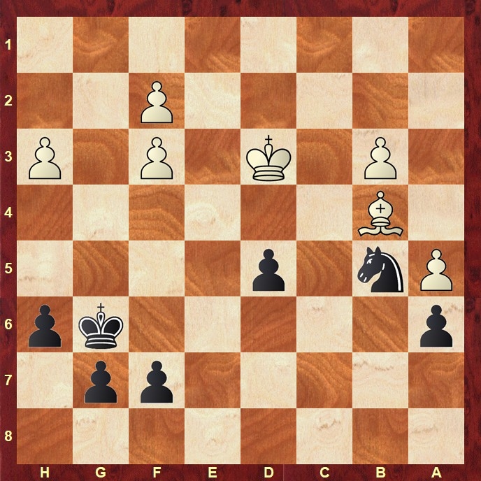 In der Diagrammstellung sicherte sich Schwarz mit dem simplen Manöver Kg5–h4 den Bauern auf h3 und brachte die Partie damit entscheidend auf die Siegerstraße.