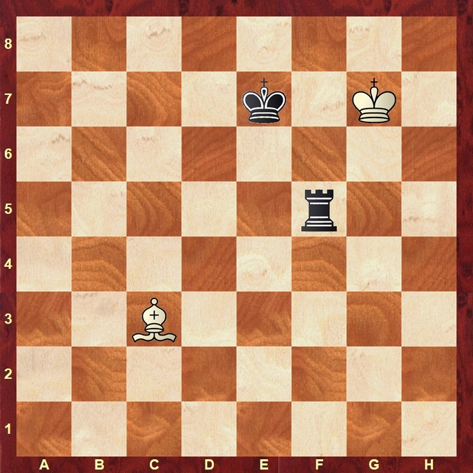 Dieses Diagramm spiegelt den Verlauf des Wettkampfes gut wider: Alles war hart umkämpft bis zu den letzten Chancen. Hier hat Schwarz zwar verhindert, dass der weiße König in die richtige, also weiße Ecke läuft, doch ihm fehlt der letzte Schritt: Schwarz kann den weißen König nicht nach h8 zwingen. Eine Festung – Remis nach 102 Zügen.