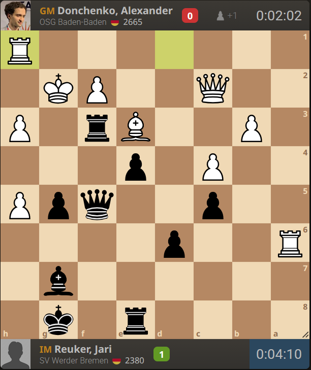 Kurz darauf folgte der emotionale Höhepunkt des Tages: Jari Reuker zauberte gegen einen deutschen Nationalspieler eine wunderschöne Kombination aufs Brett und stellte den Ausgleich wieder her – 2,5:2,5. Der Mannschaftskampf war plötzlich völlig offen. Hier die wunderschöne Kombination: