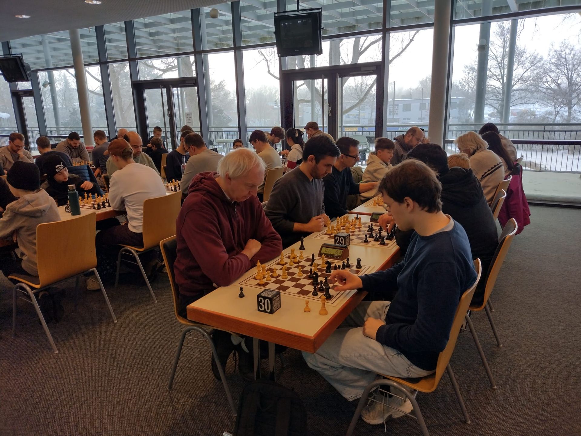 Das war ein voller Erfolg – und das nicht nur organisatorisch. Aufgrund des Wintereinbruchs mit extrem viel Schnee und Eis in Bremen reduzierte sich die Teilnehmerzahl am Turniertag von ursprünglich über 80 angemeldeten Spielerinnen und Spielern auf 65. Diese sorgten über neun Runden Schnellschach dennoch für ein echtes Schachfest an den Brettern, mit spannenden Partien, überraschenden Wendungen und vielen starken Leistungen aus grün-weißer Sicht.