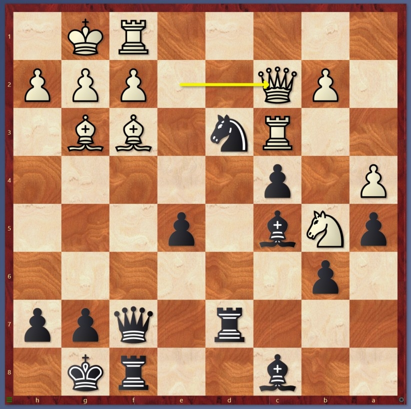 In der Diagrammstellung spielte Schwarz 17… Sd4 18.Dc4 b5!!? 19.Dd3?? (19.Sh6+ Kh8 20.Sgf7+ Kh7 21.Dd3 mit Schach! Gewann leicht) …